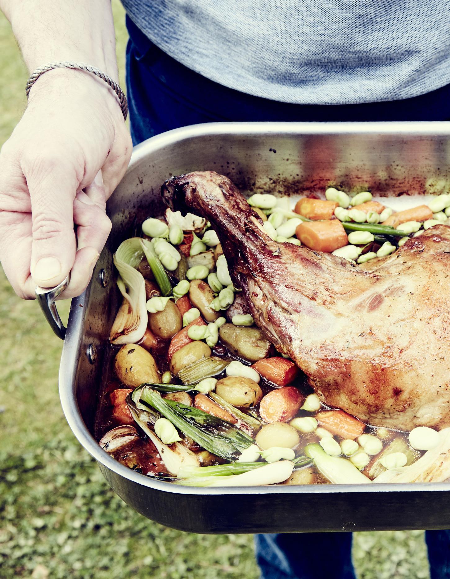 - La cuisson de l’agneau prend 3 h 30 mn à 4 h. L’épaule doit être colorée, fondante, les légumes glacés. Placez les oignons dans le plat, enfournez environ 10 mn. A la sortie du four, ajoutez les fèves (crues si elles ne sont pas trop grosses, ou blanchies). Arrosez l’épaule d’une très bonne huile d’olive, parsemez d’un peu de fleur de sel et poivrez au moulin.