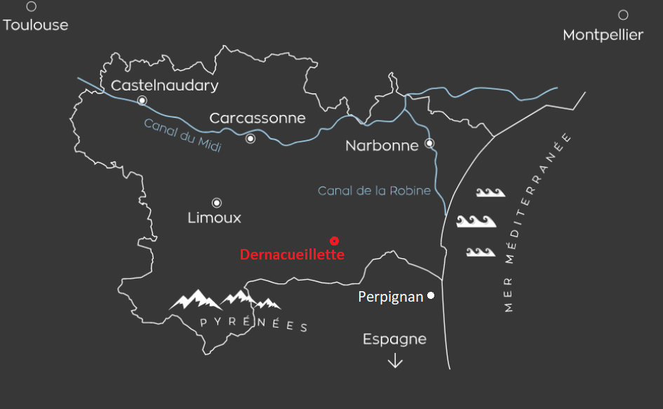 La cave se trouve à Dernacueillette, soit à 1 heure 15mm de Perpignan, Carcassonne, ou Narbonne.